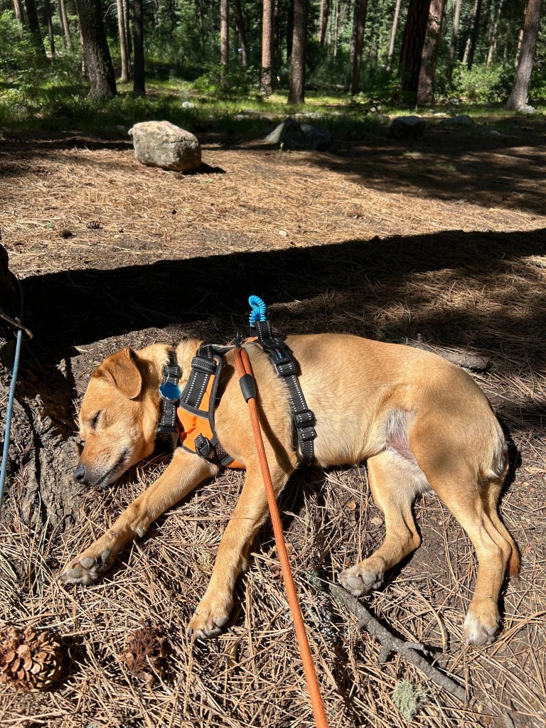 - I need for Lu, our middle child dog that probably feels like a middle child dog at home because little boy pug Scout is overly attention seeking, to be the bestest travel and camping dog you could imagine. We often have to remind ourselves that she is with us. And I need for her to find this bed of straw in the sun because if this doesn’t spell happiness…