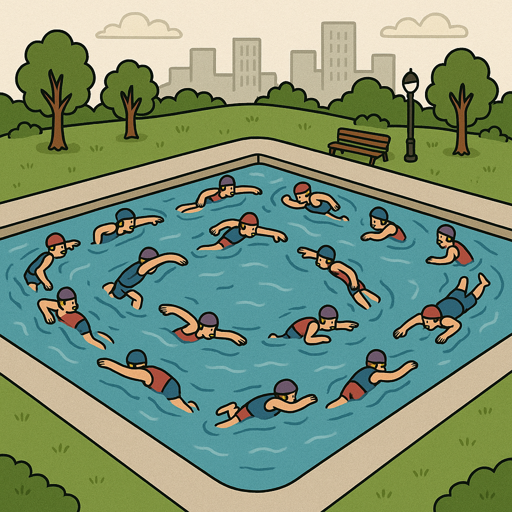 - Friend: Technically, it’s a rectangle. Do you want to circle swim or each take half the lane?