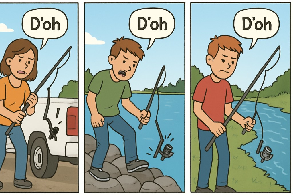 - We, collectively, need not have broken three fishing rods (out of two fishing rods + a purchased replacement fishing rod) while on a 12 day camping trip.