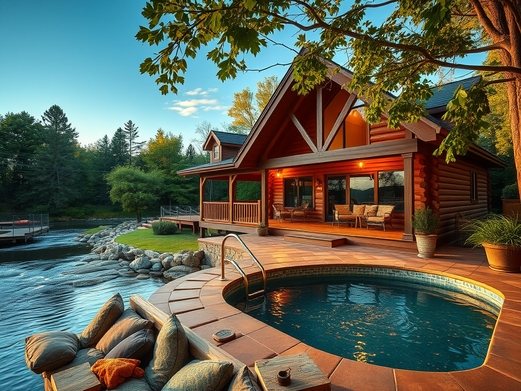 Live, with my husband, in a small lakeside log cabin with a wrap around porch, wood burning fireplace, indoor/outdoor pool and lazy river.