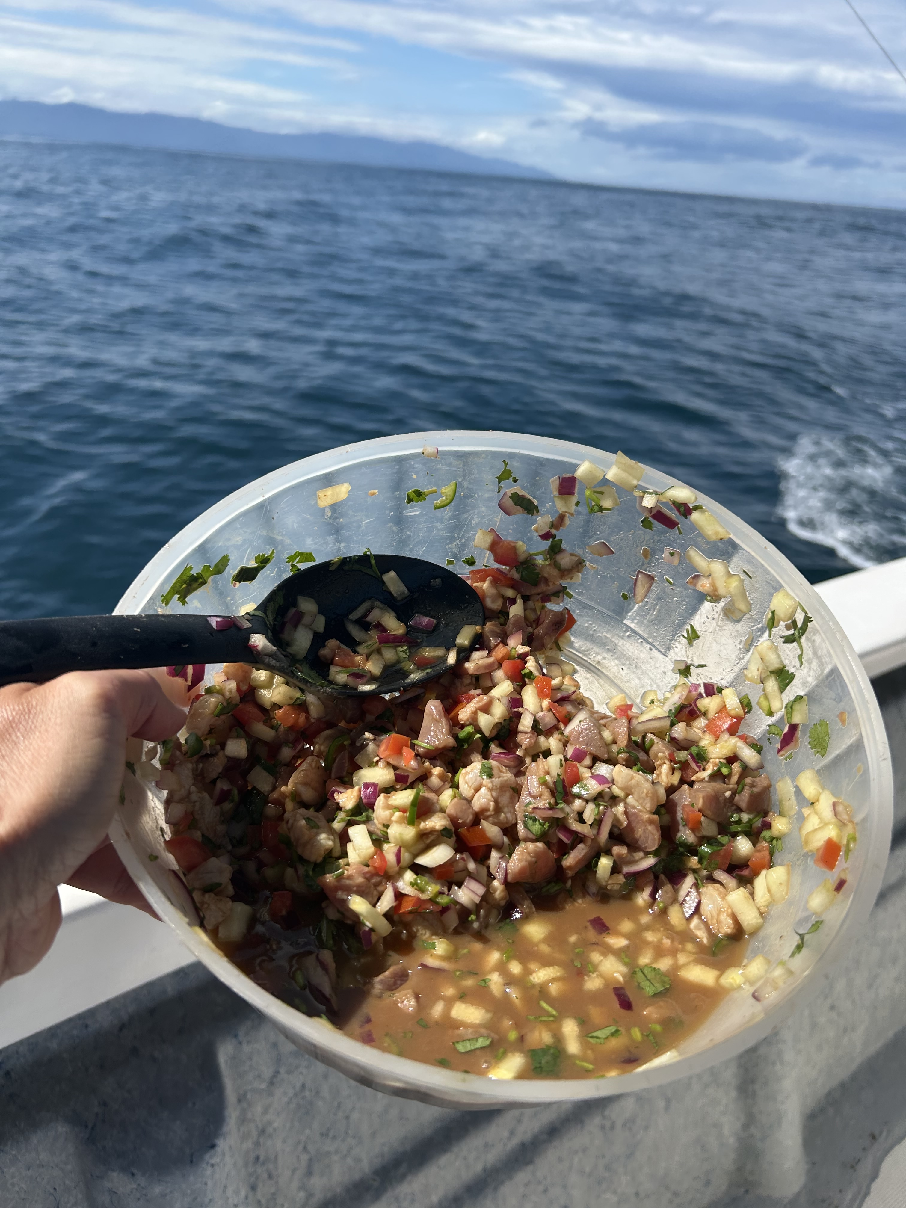 - Deserving of its own bullet point, I needed for our fishing excursion to be a 6 for the price of 1! We paid to fish, caught more mackerel and skipjack fish than we could count, were treated to fresh ceviche, landed in the middle of a school of dolphins and saw 30+ sea turtles.