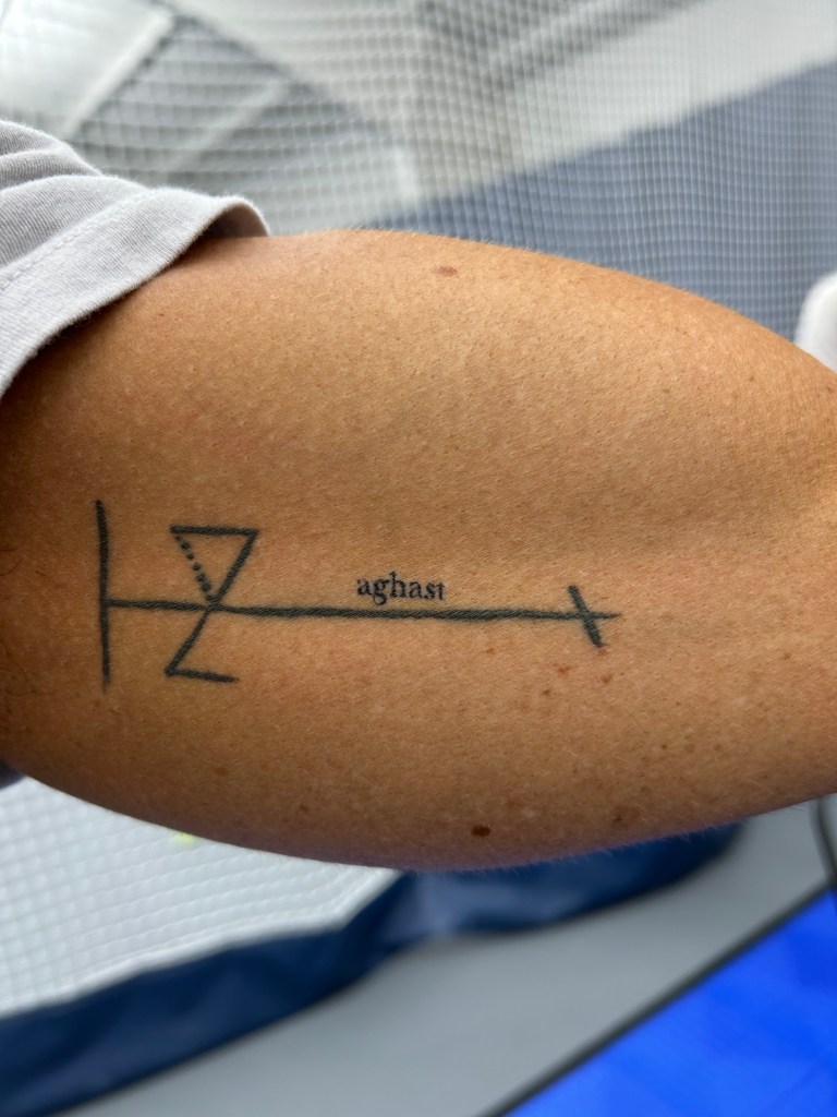 - Two friends met up in New York. One randomly chose a bookstore. The other randomly chose a book section. They alternated in this fashion to choose a book, page, paragraph and word, which wound up being aghast. The two friends proceeded to a tattooist and each tattooed the word on their body. Shocking, right? 😉