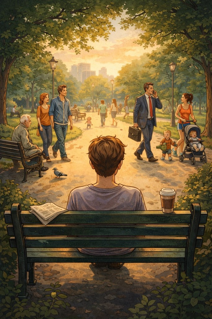 “Sit on a park bench and people watch.”