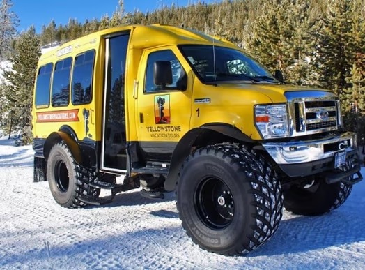 are specialized winter vehicles equipped with oversized, low-pressure tires (often around 12 psi) or tracks, designed to float over deep snow rather than driving on plowed roads. These heated, van-style buses are the primary transport for winter tours (mid-December to March).